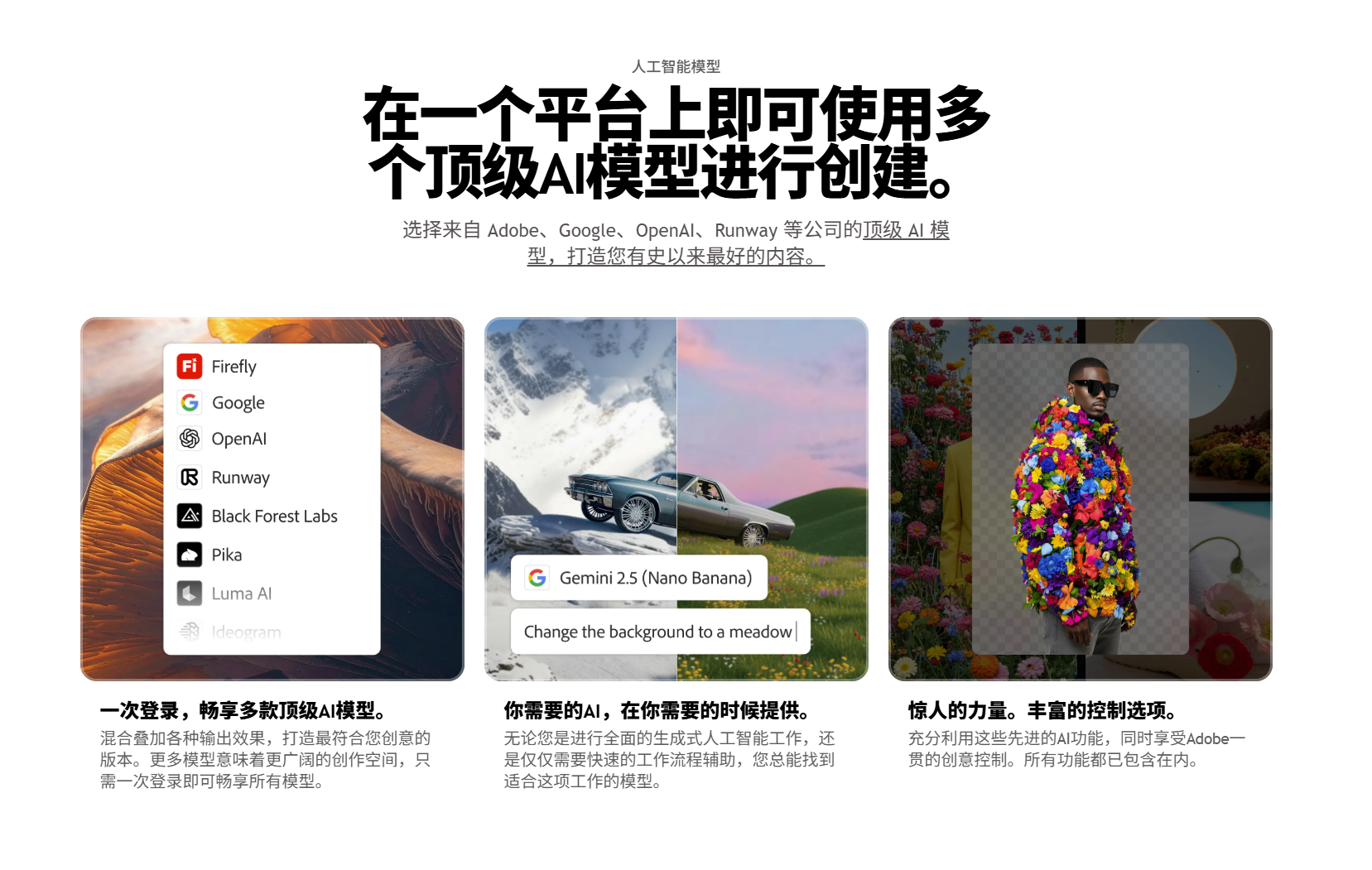 - 第三方模型接入:支持Google、OpenAI、Flux等合作伙伴模型。