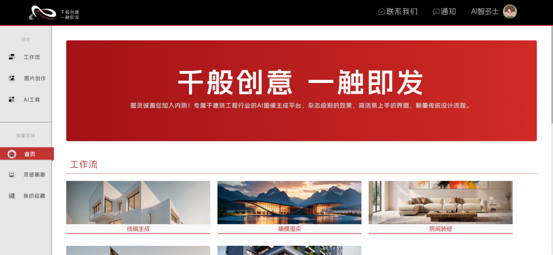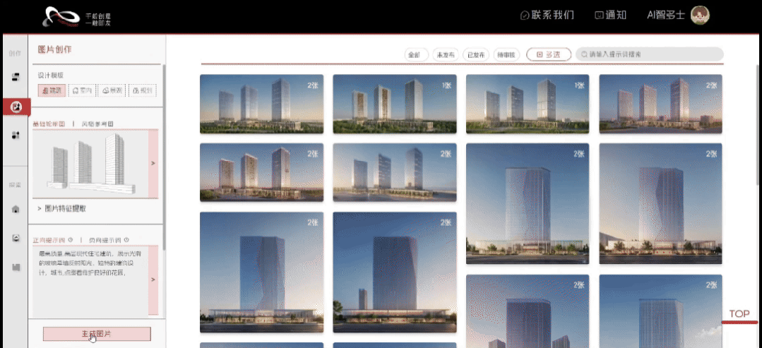 基于自研建筑大模型ArchiMaster,提供建筑、室内、景观三大领域的AI图像生成能力,帮助设计师快速进行方案创作和视觉呈现,提升设计效率和创意表达