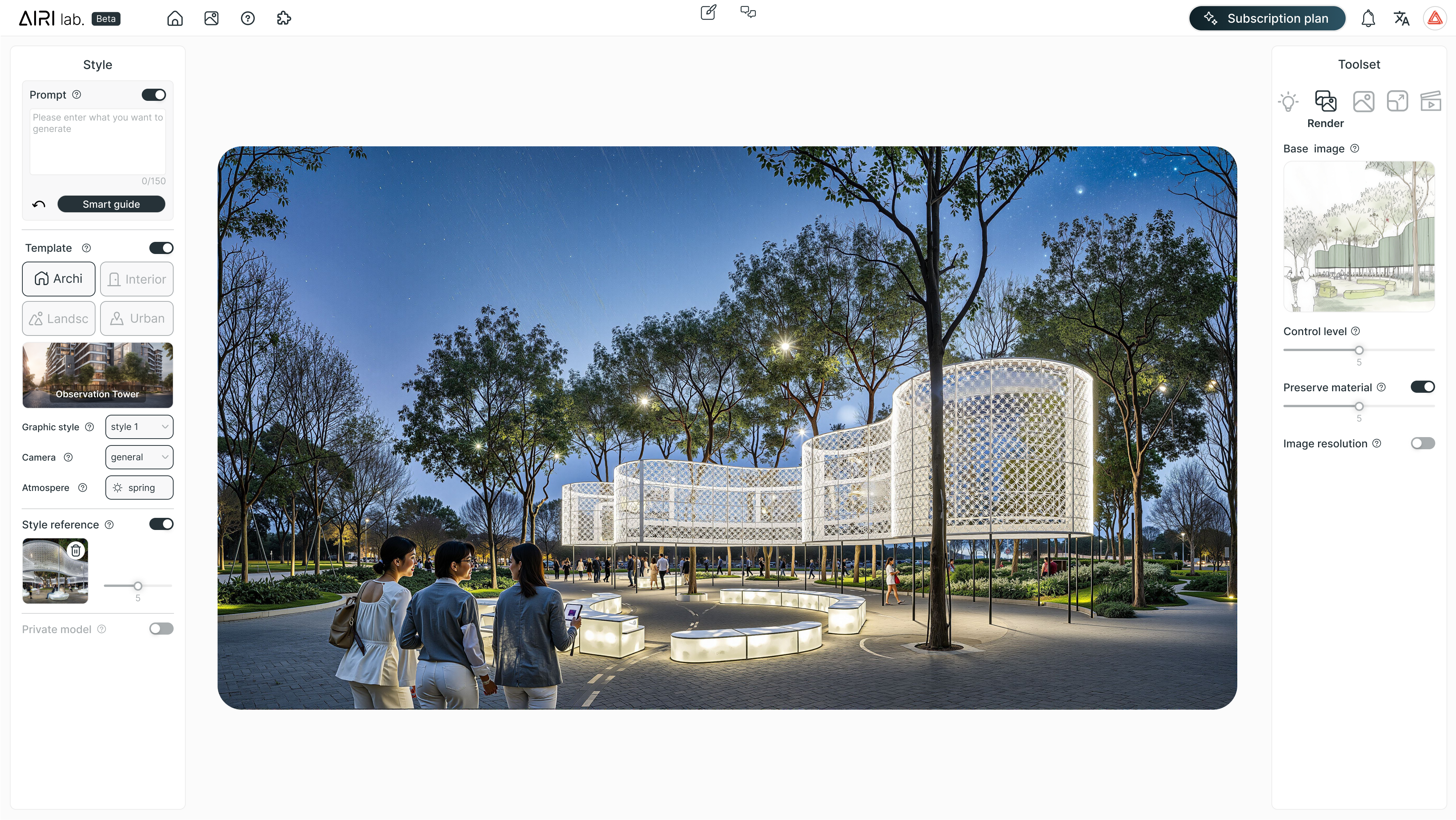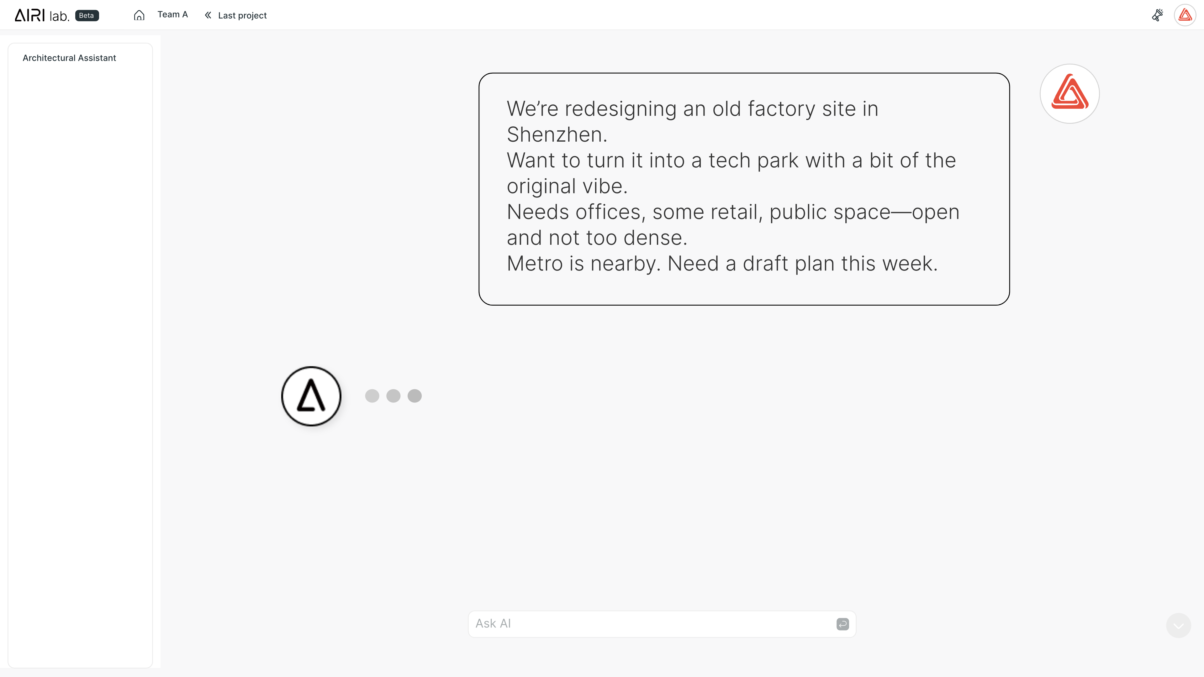 AIRI Lab是一个专为建筑、工程和施工(AEC)行业设计的AI平台。核心技术是生成式AI,并结合了参数化设计理念,允许用户通过简单的输入快速迭代设计方案。