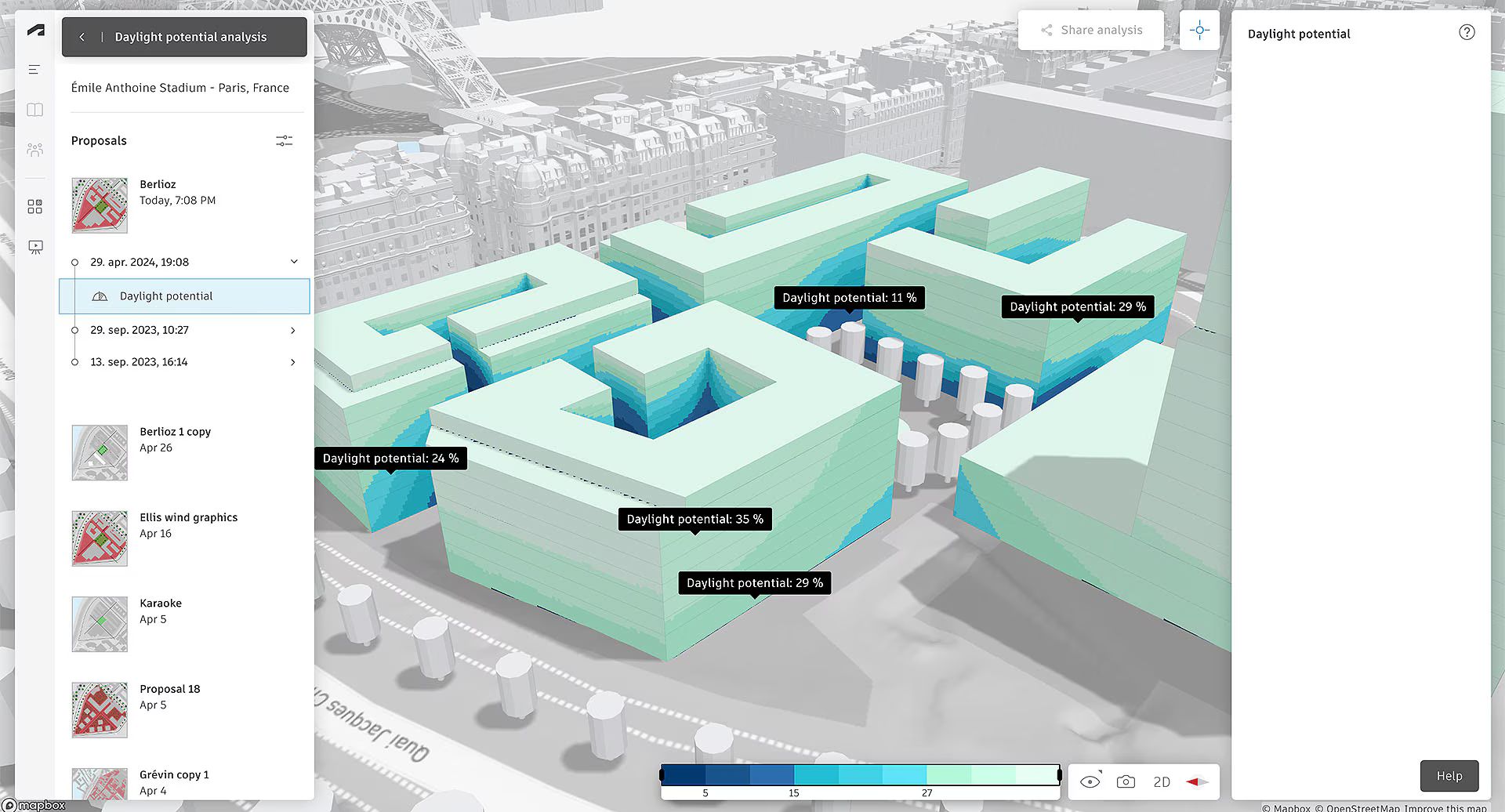 - 环境影响分析:日照、噪音、风、热舒适度、内含碳等实时AI分析;