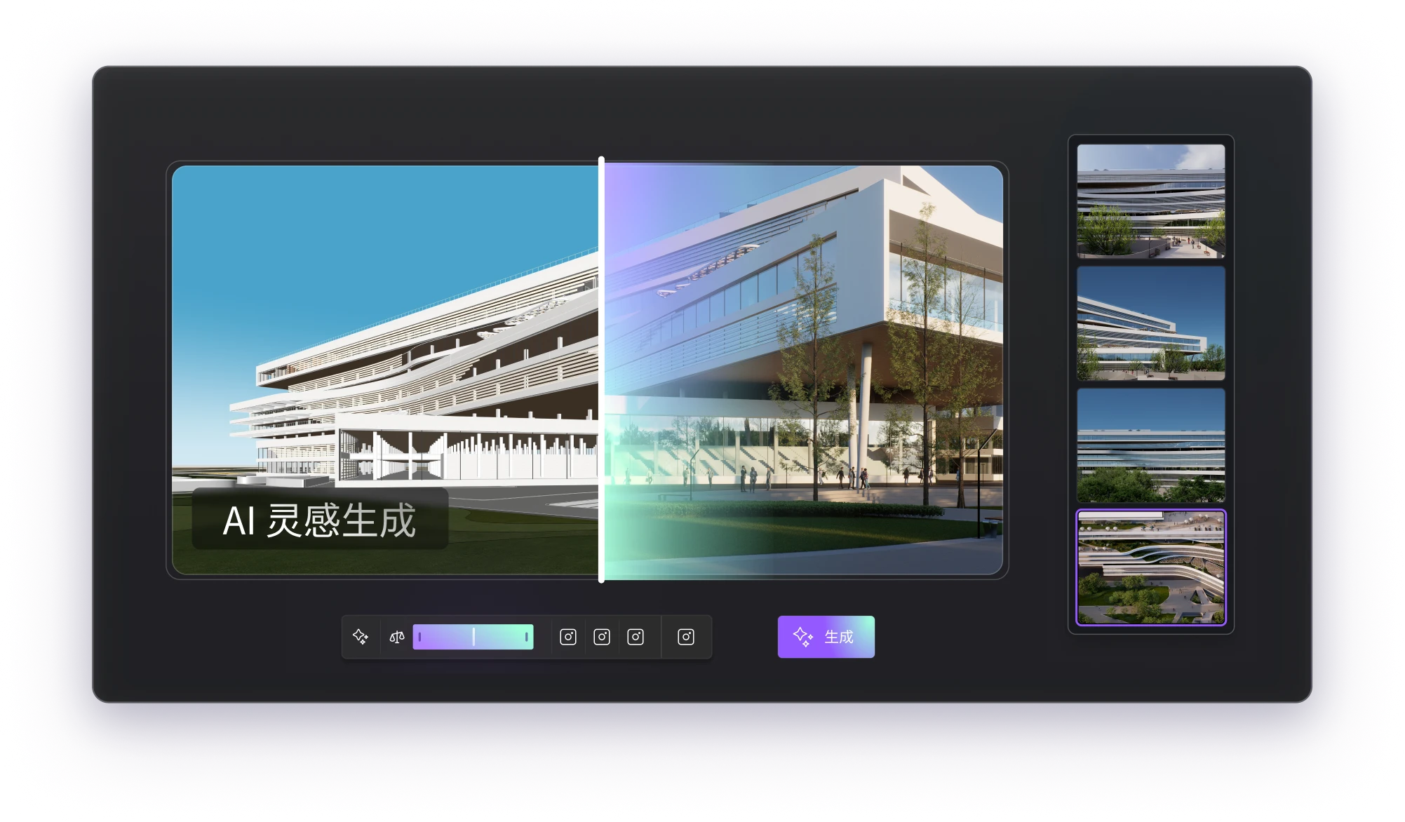 - AI + PCG 能力:AI 设计助手、渲染图像增强、风格迁移、PBR 材质生成等。