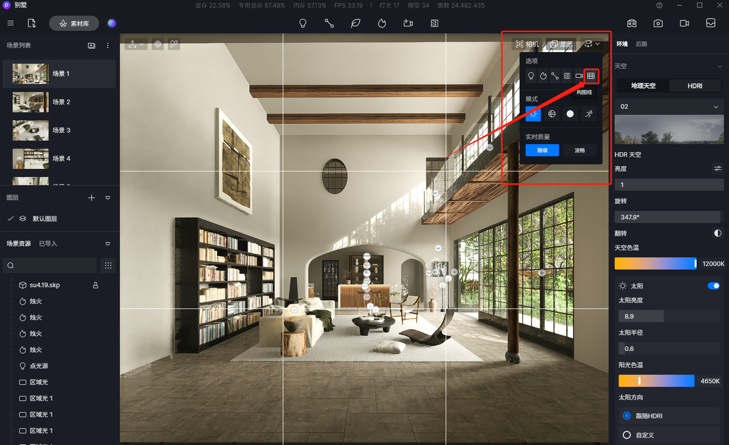 - 实时光追渲染 + 自研 D5 GI 全局光照:接近离线品质的实时交互预览与反馈。