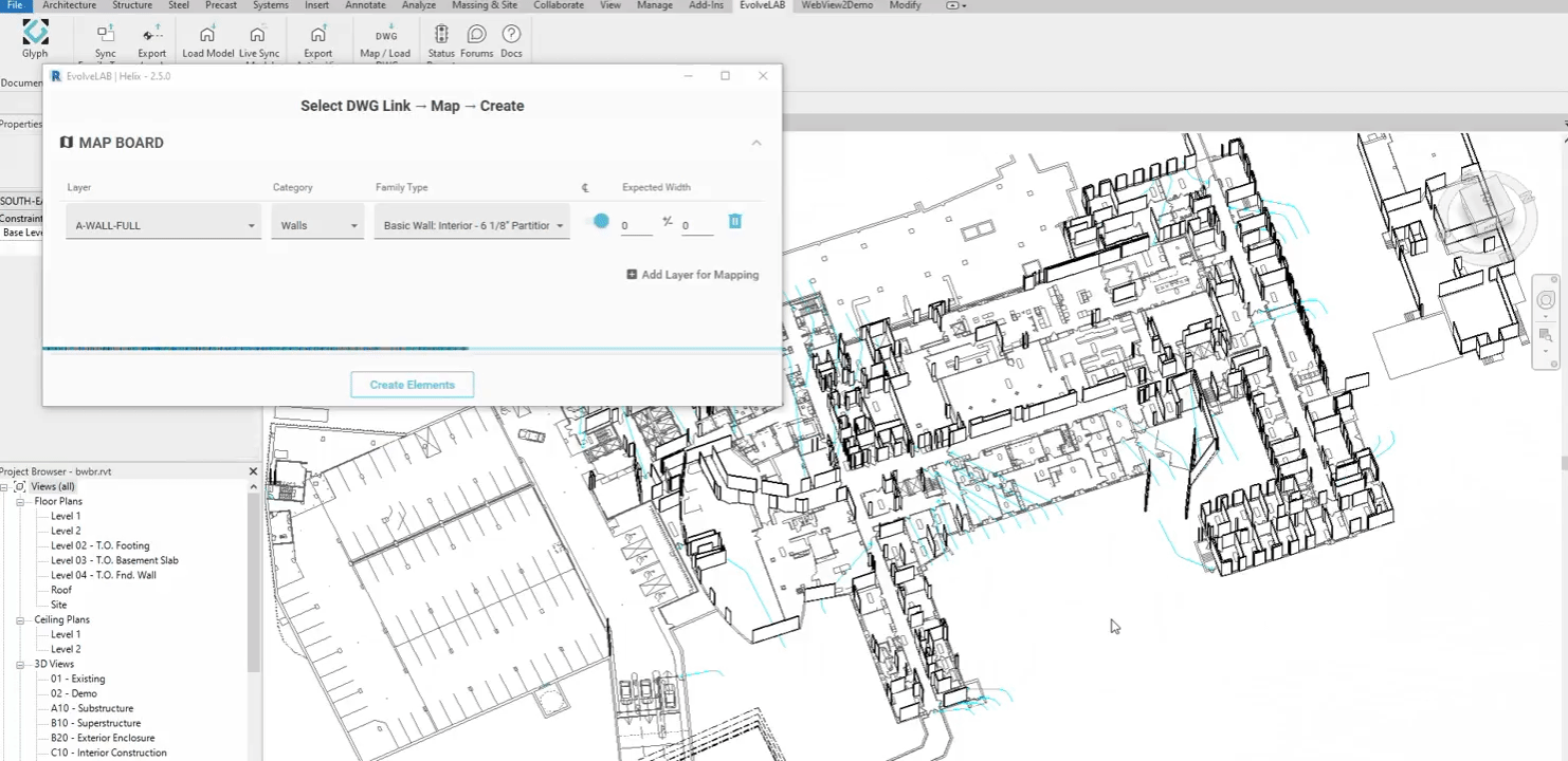 - AutoCAD转Revit:支持墙、门、窗、栏杆、房间分隔线、管道等。