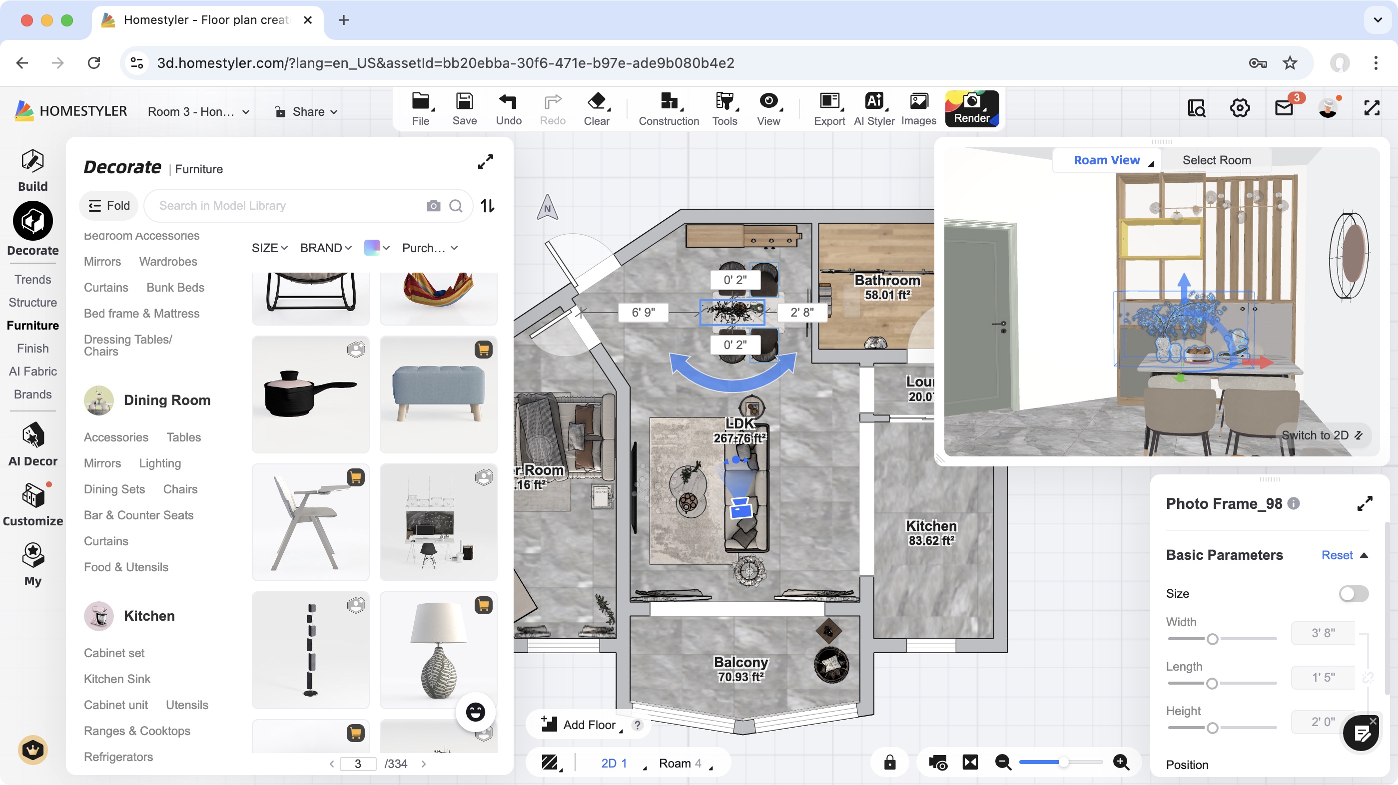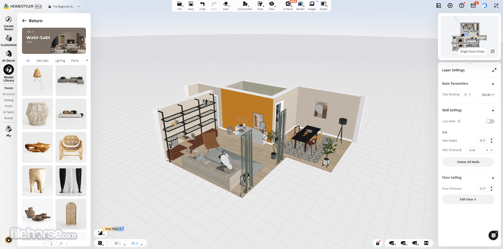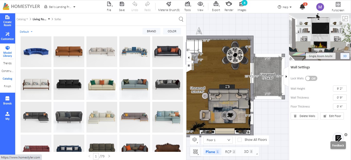 - 超过1000万个真实品牌家具3D模型库,简单拖放即可装饰房间;