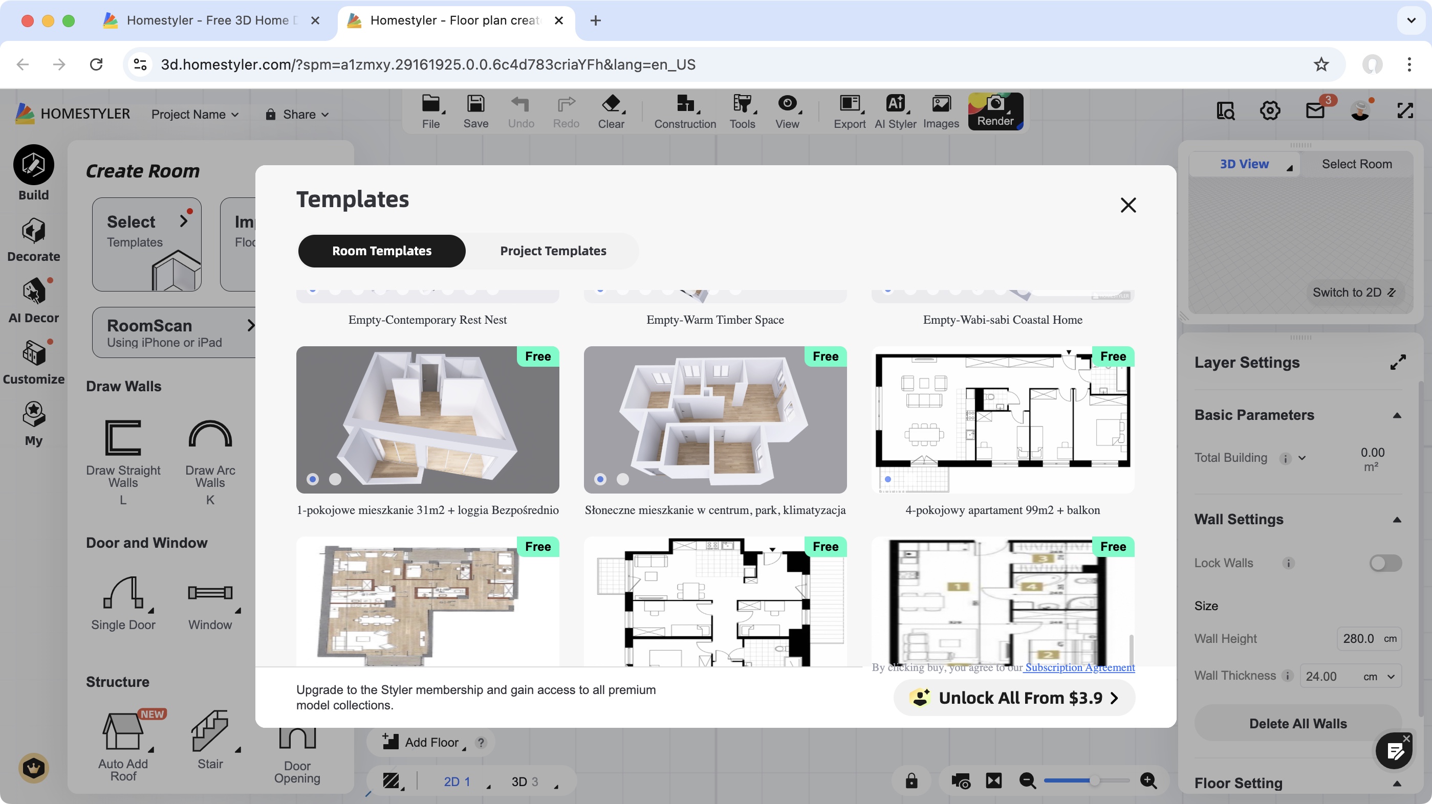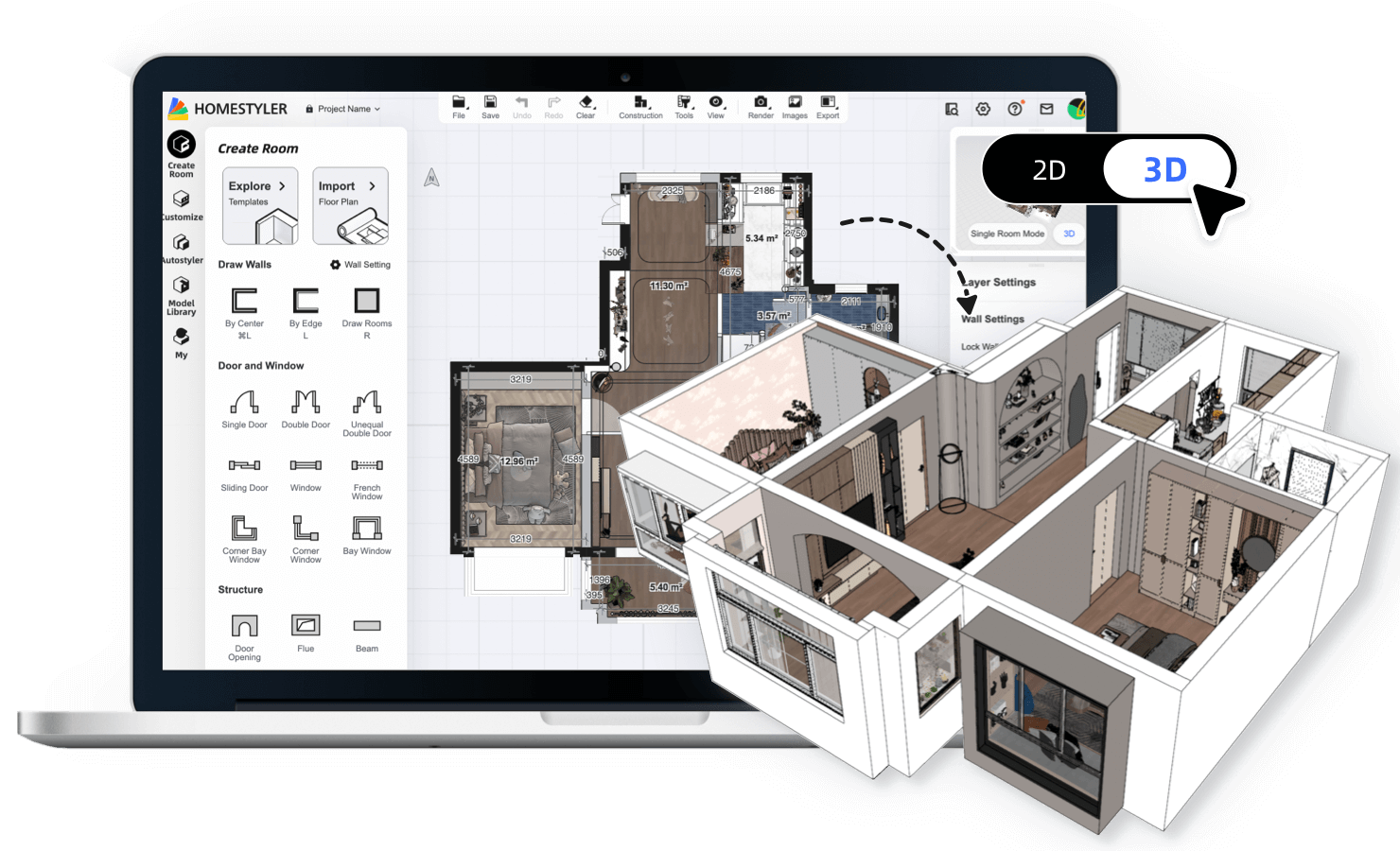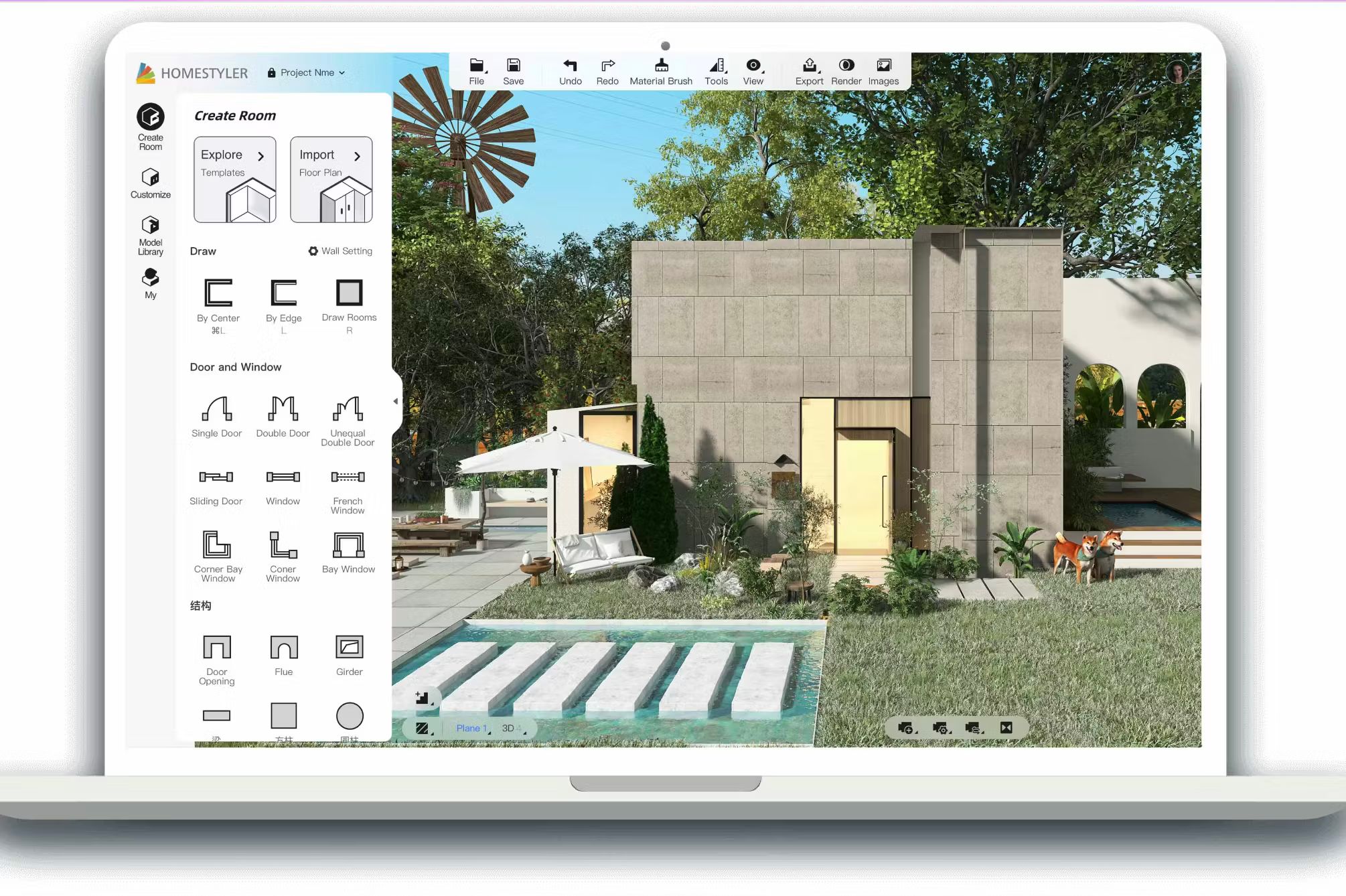 - AI驱动的2D转3D功能,上传平面图或草图即可一键生成可编辑的3D房屋模型;
