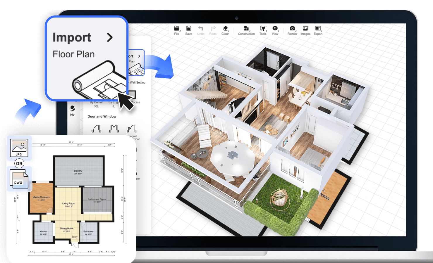 支持导入导出常见格式(图片、PDF等),与家具品牌数据库集成