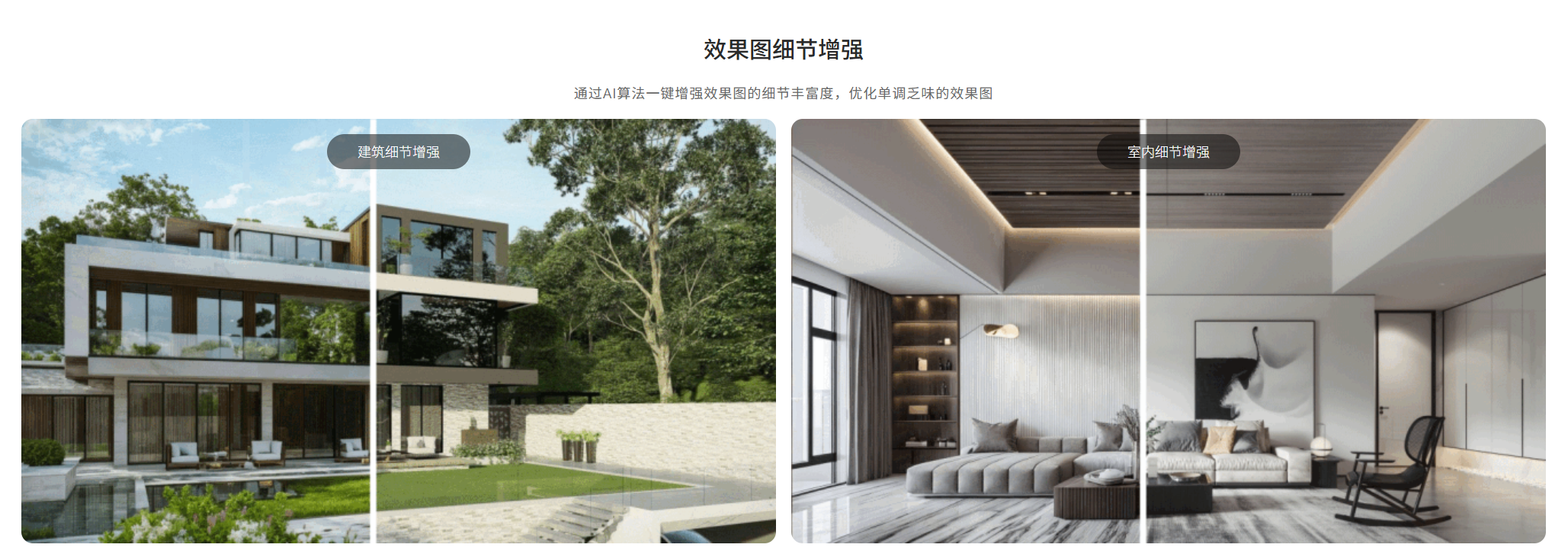 - AI效果图细节增强:通过AI算法一键增强效果图的细节丰富度