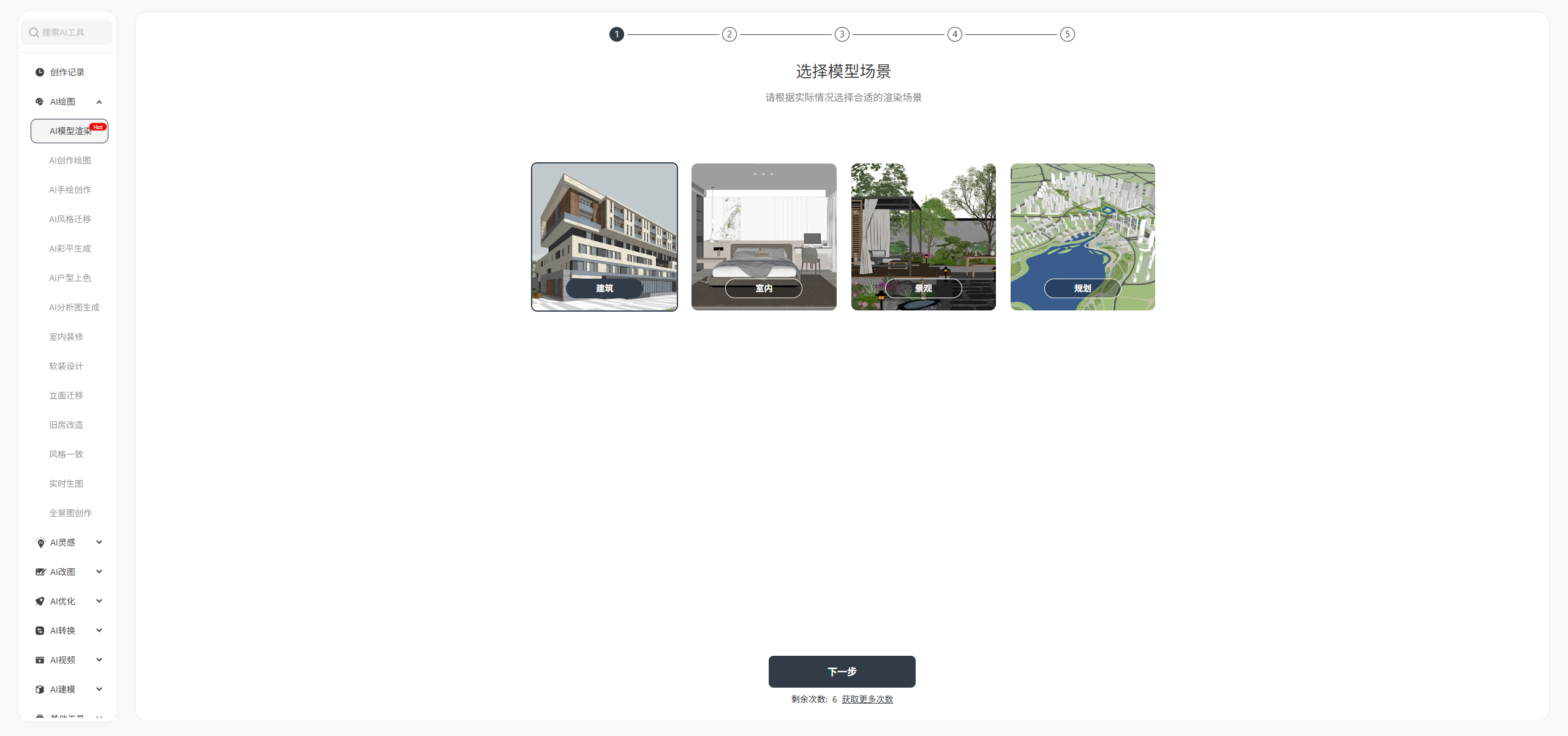- AI模型精准渲染:一键渲染建筑模型生成高质量效果图,精准还原材质肌理