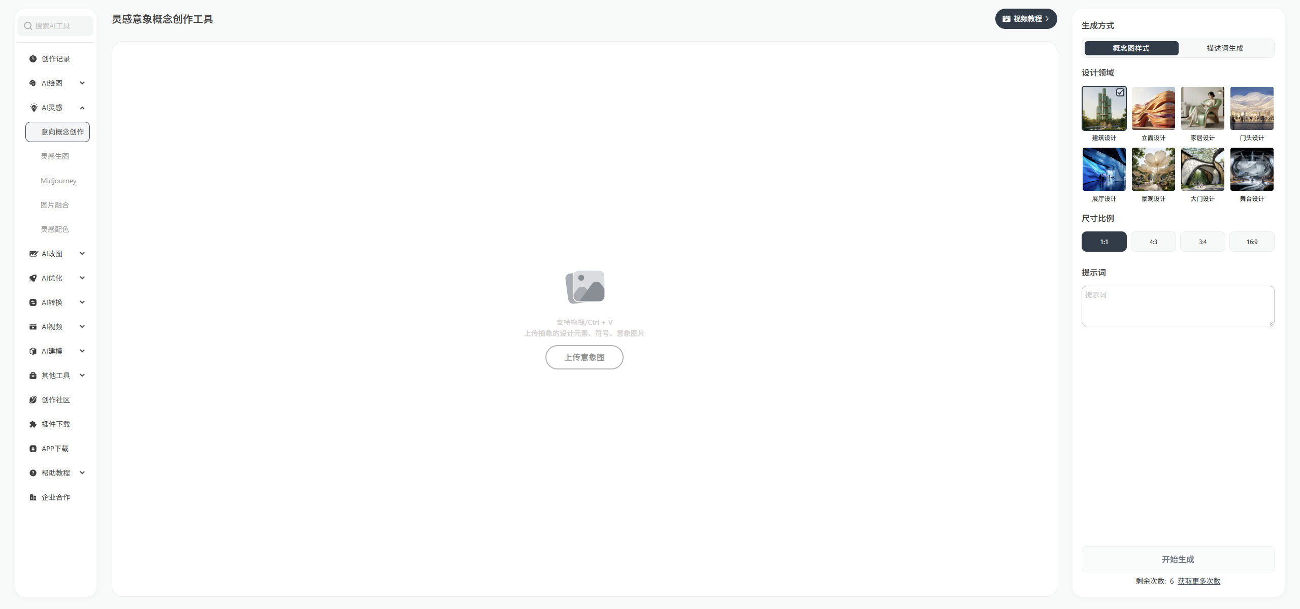 - 灵感激发与创意突破:通过文生图或图生图快速获取灵感意向参考图片,AI即时生成多版概念草图;