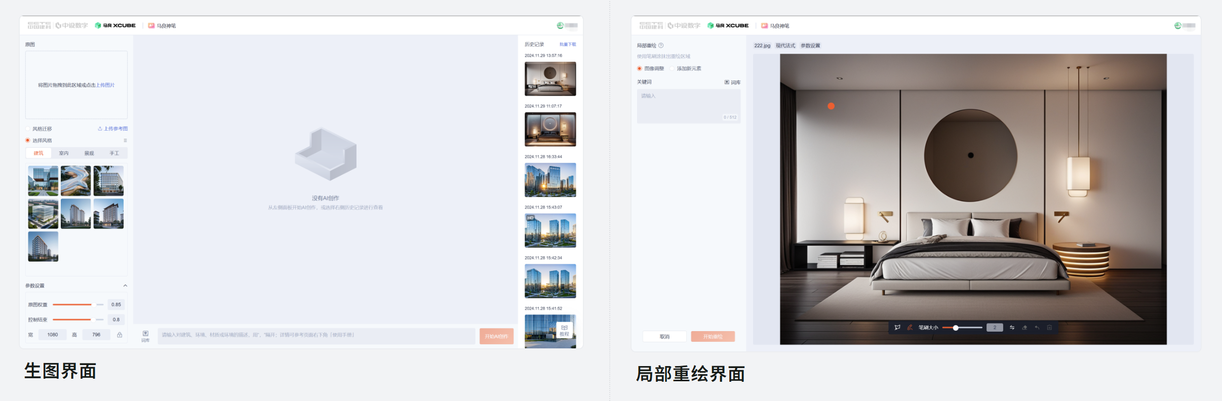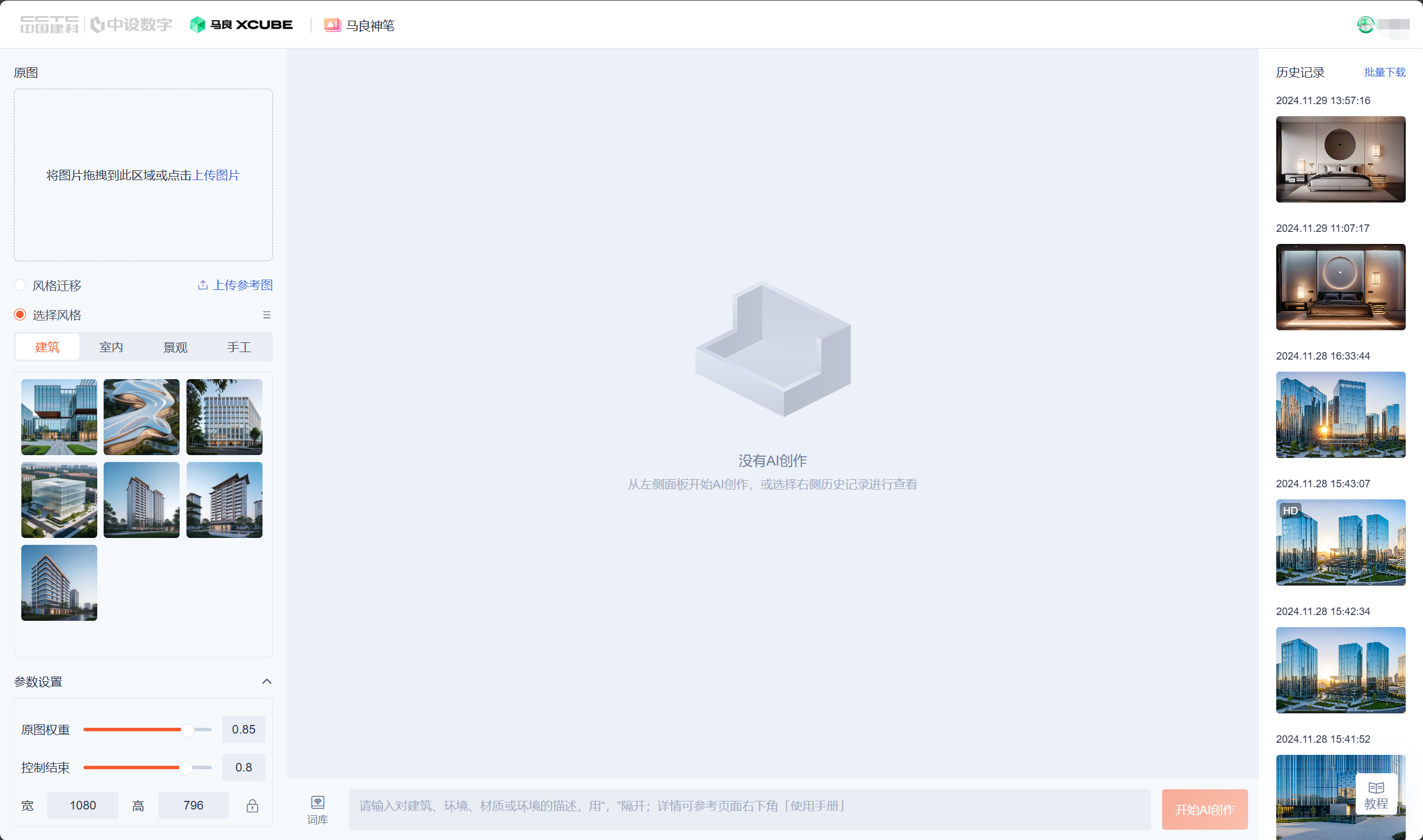- 降低渲染门槛:无需专业渲染技能,通过简单的上传图片和描述关键词即可生成高质量效果图