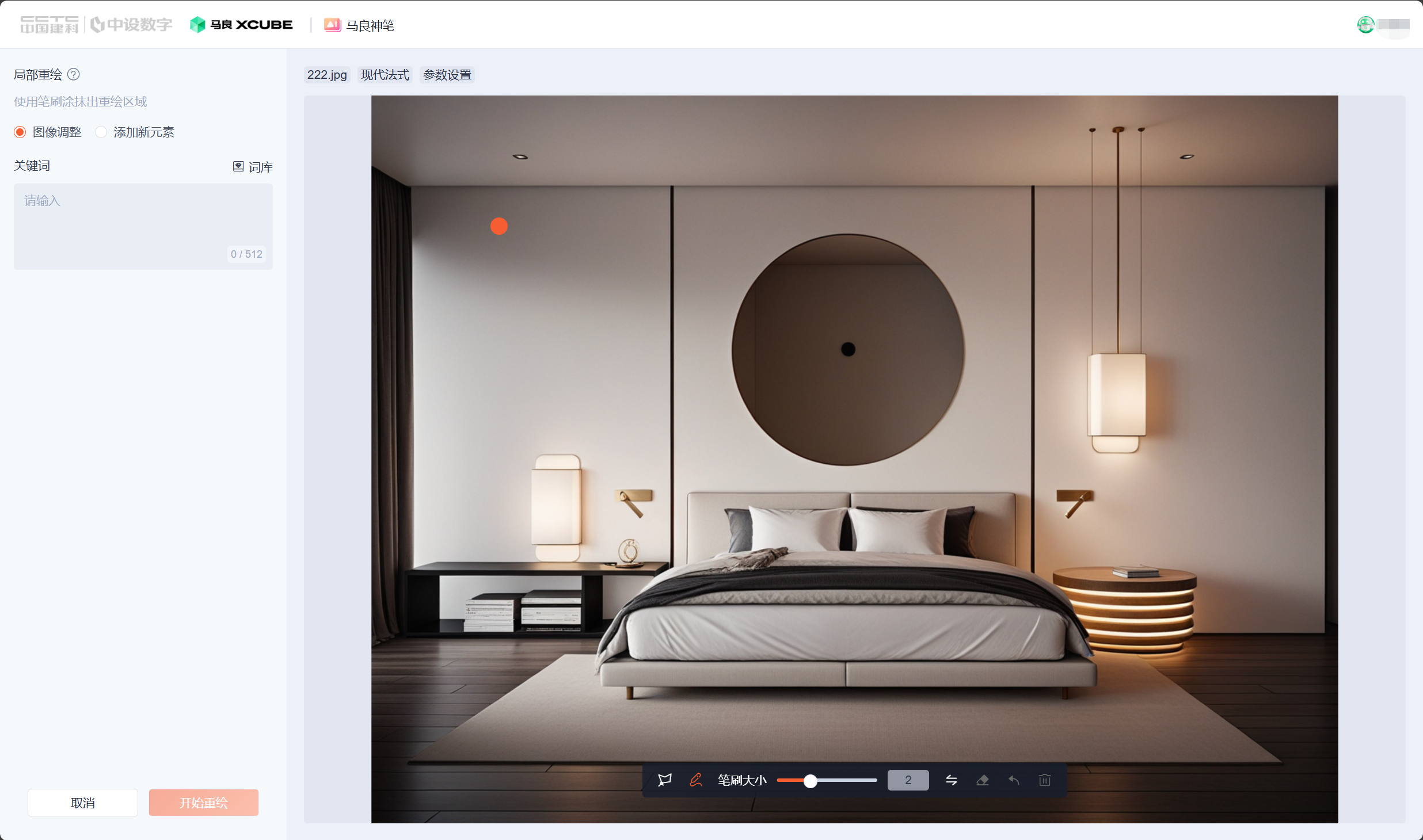 - AI图生图:上传参考图片,通过AI技术自动生成高质量渲染图