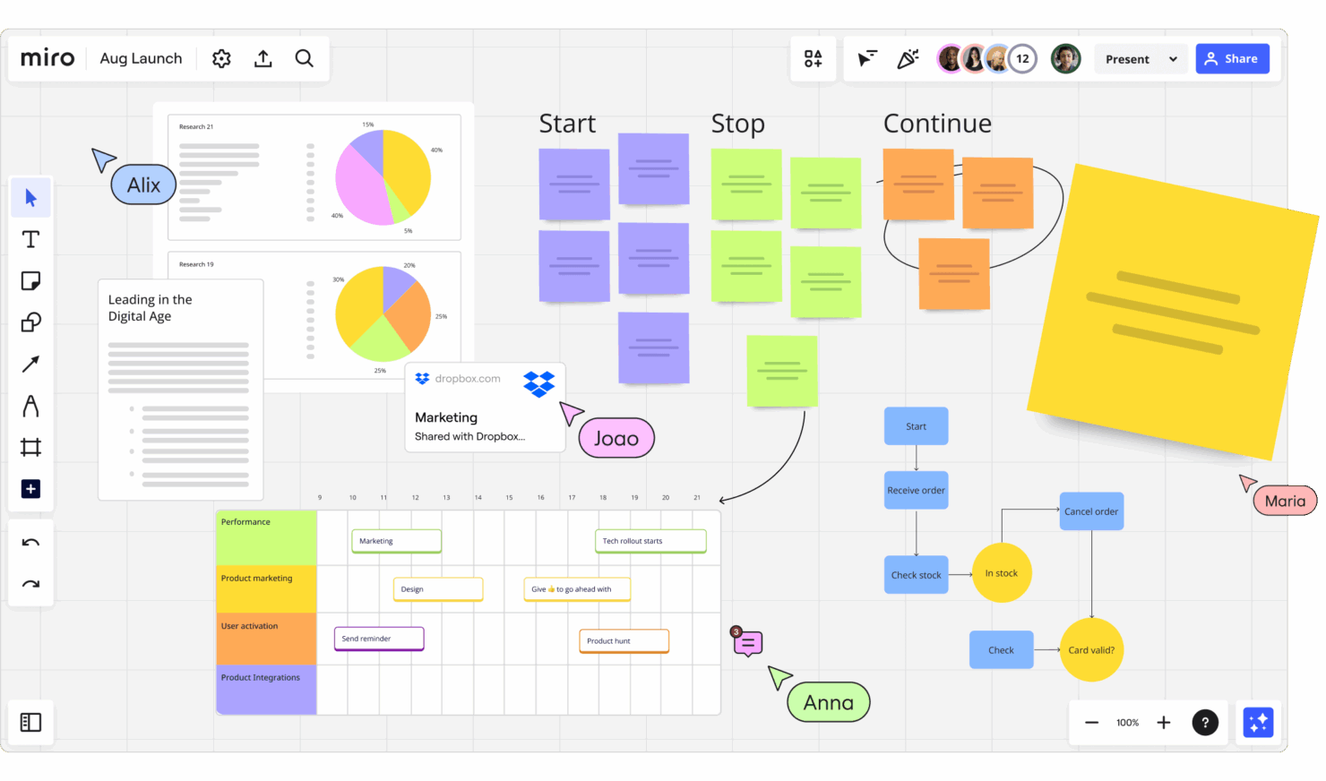 - 提供无限画布,支持多人实时或异步协作,适合分布式团队;