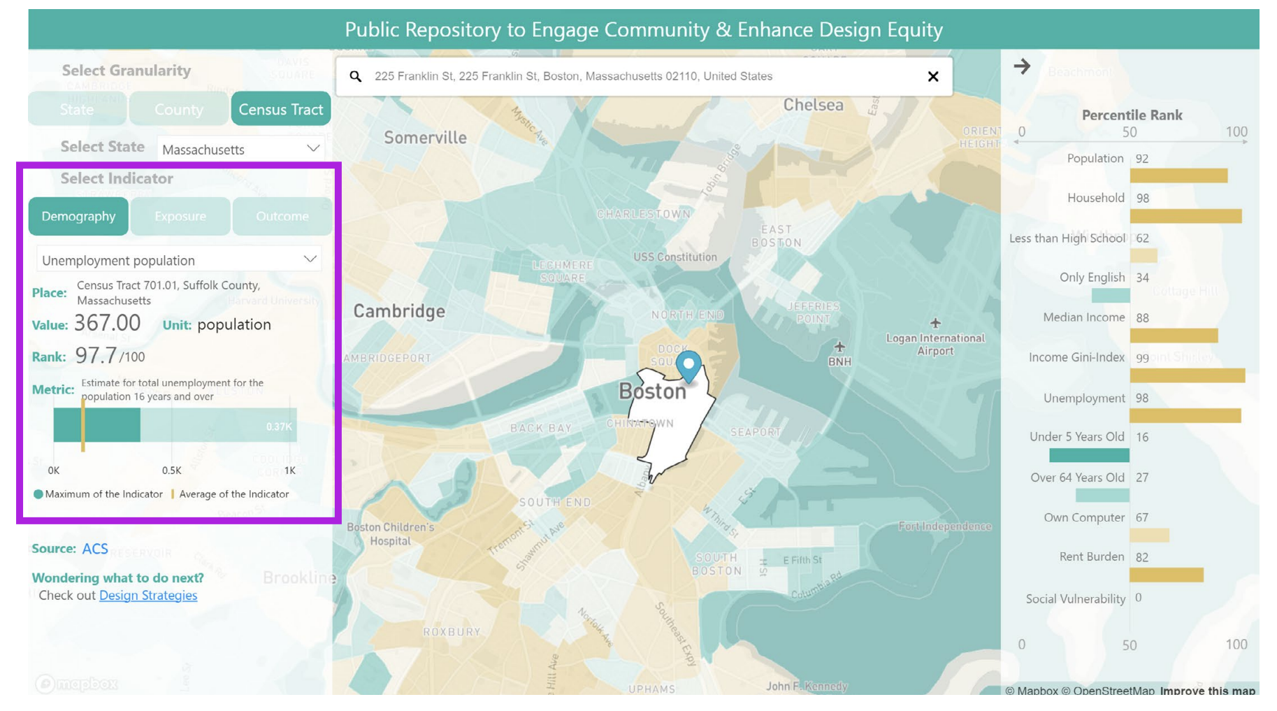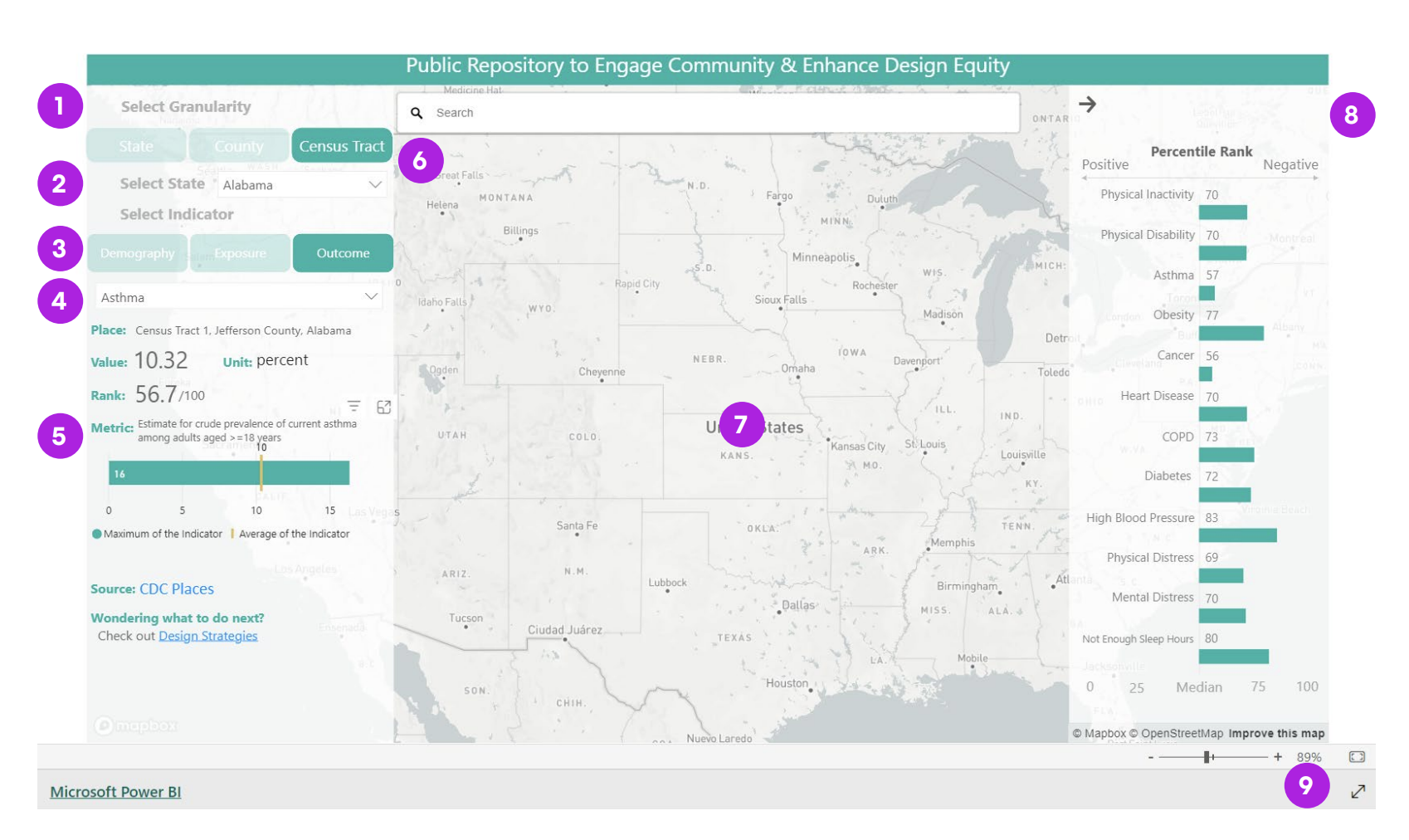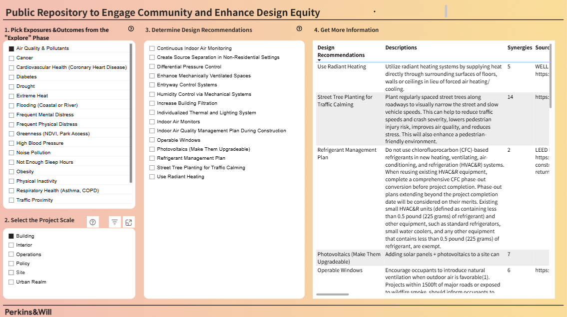 PRECEDE是一个开源数据仪表盘,整合了美国疾病控制与预防中心(CDC)、环境保护署(EPA)、美国人口普查局等多个公共健康数据库的数据,使设计专业人员能够更好地了解特定场地的健康因素。平台提供39项人口统计、环境暴露和健康结果指标,帮助设计师在项目早期阶段识别社区公共健康优先事项,促进社区参与,创造更健康的建筑环境。该工具免费向设计行业开放使用。