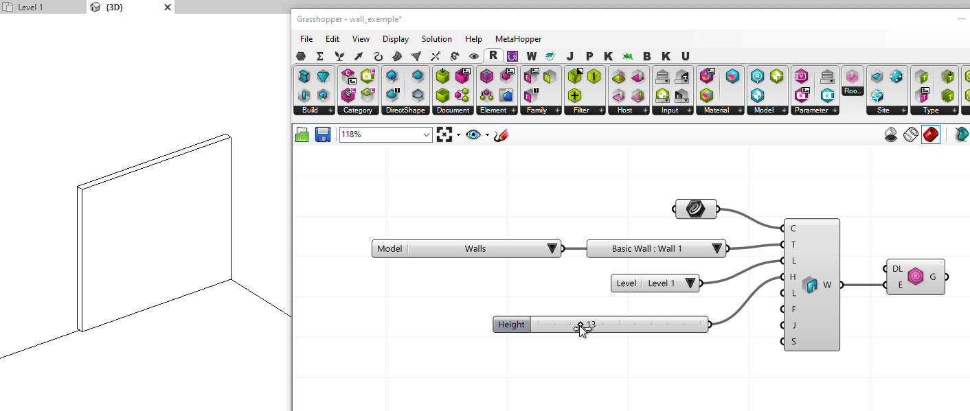 - Grasshopper-Revit组件:专门的Grasshopper组件用于创建和修改Revit元素(墙、楼板、柱、族等);