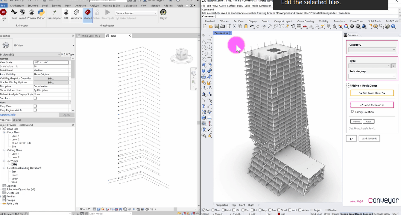 - 双向数据交换:Rhino几何体与Revit BIM元素实时转换;