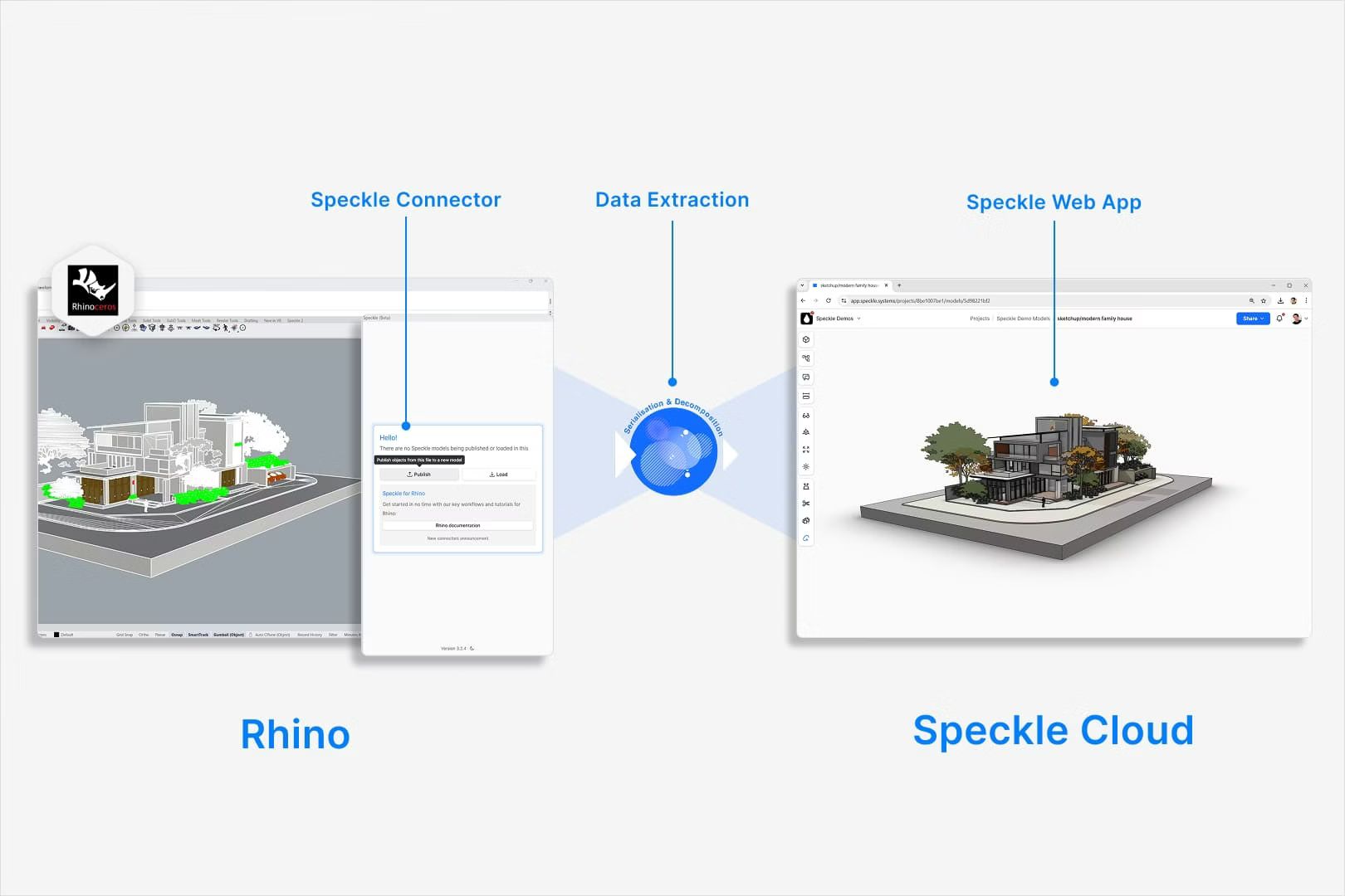 Speckle是一个开源的数据平台,解决AEC行业三维模型和数据在不同软件、团队和流程之间难以协作共享的问题。通过标准化的数据结构和连接器,使用户能够在各种常用的CAD和BIM软件之间无缝、高效地传递和管理几何体及元数据,打破数据孤岛,提升跨专业、跨阶段的协同效率。