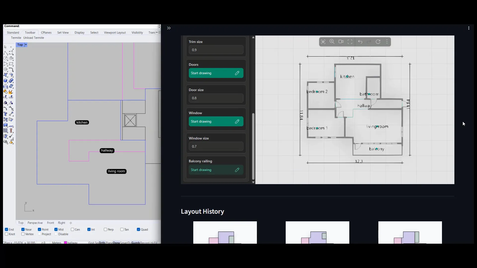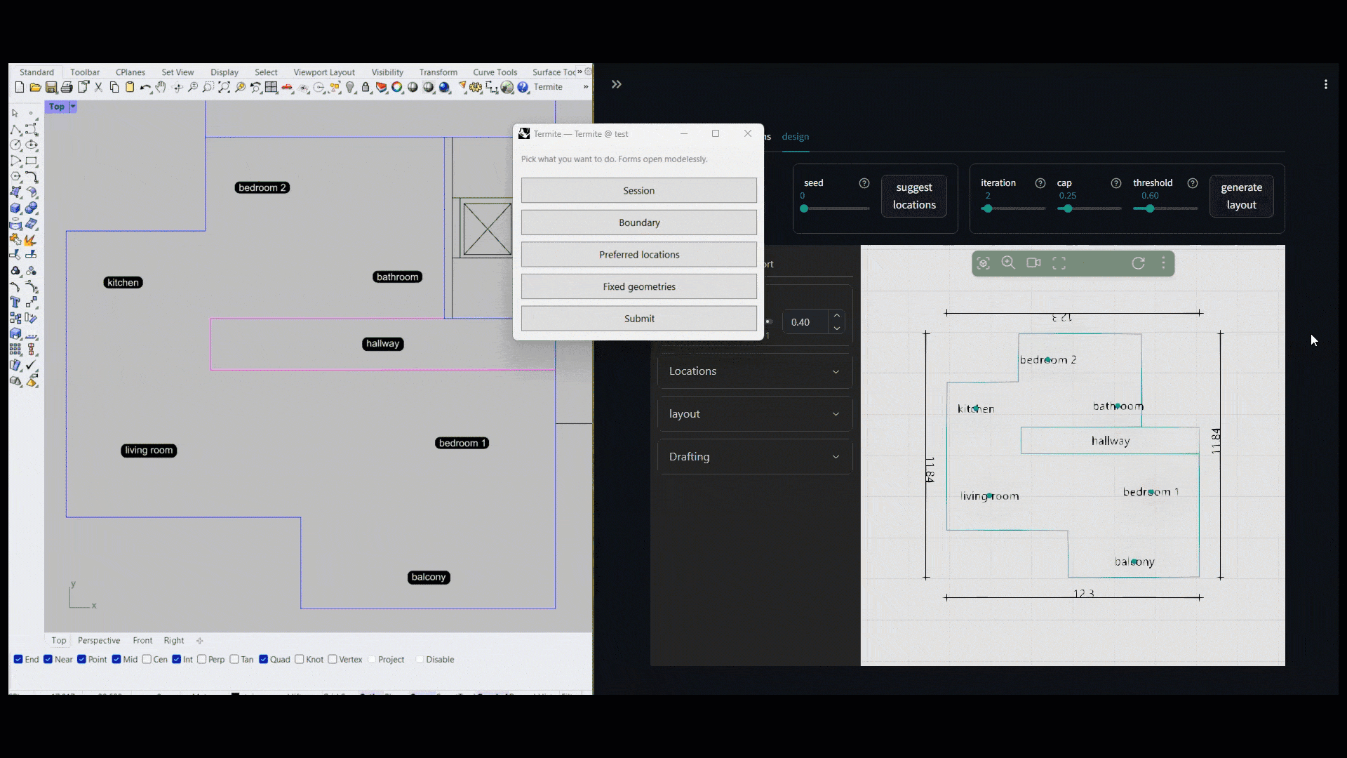 - AI布局生成:根据用户定义的空间、边界、偏好位置和固定几何形状,利用AI探索式生成多样化的布局方案。