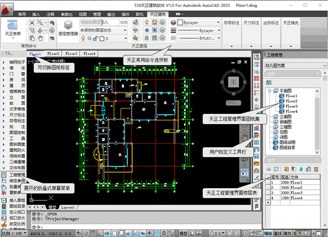 - 工程管理:通过图纸集和楼层表管理项目,支持多图纸批量操作