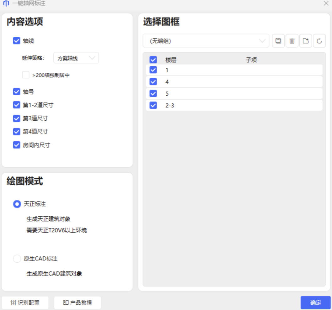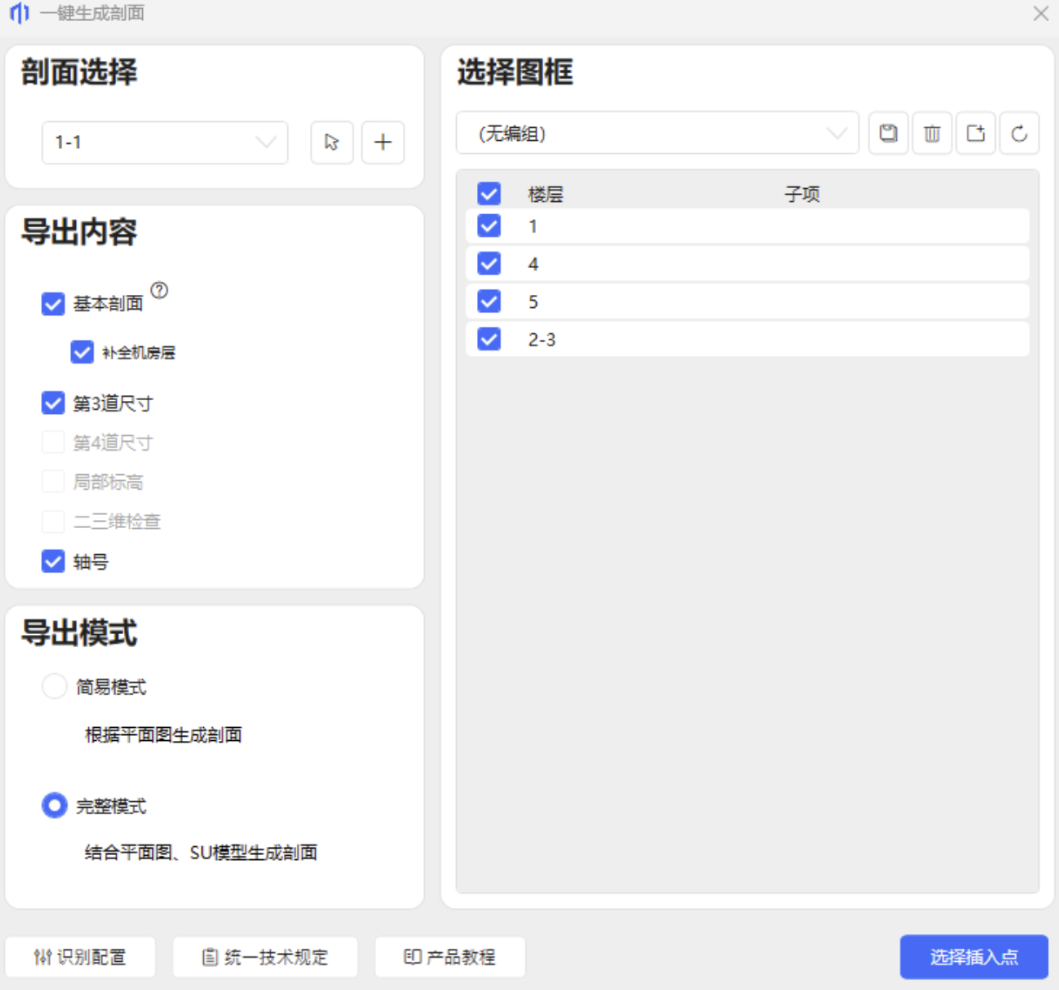 - 制图工具:平面填色、平面重绘、面积指标、轴网标注、各层平面、SU模型。