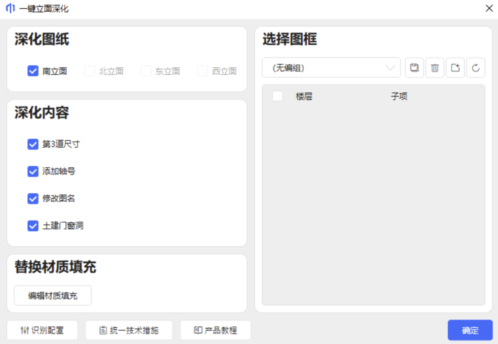 - 一键成图:平面深化、造型表达、一键剖面、一键立面、Revit模型。