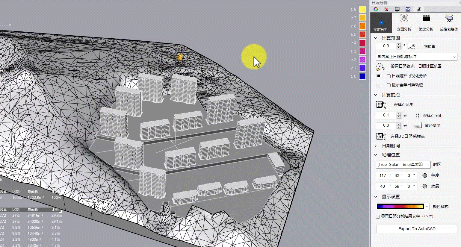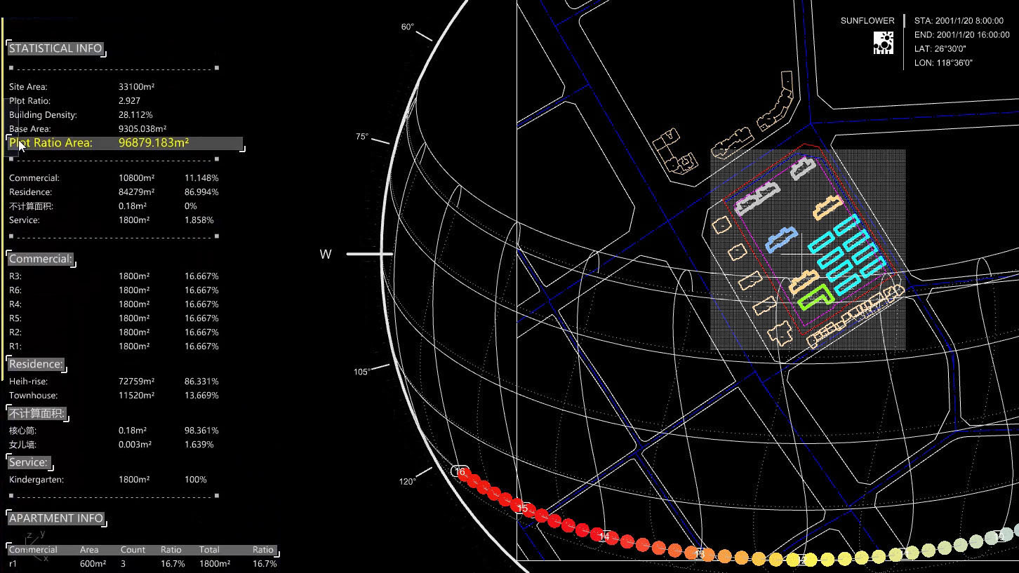基于Rhino和Grasshopper平台的插件,通过参数化与生成式设计及仿真与分析引擎,提供实时日照分析和指标统计功能。