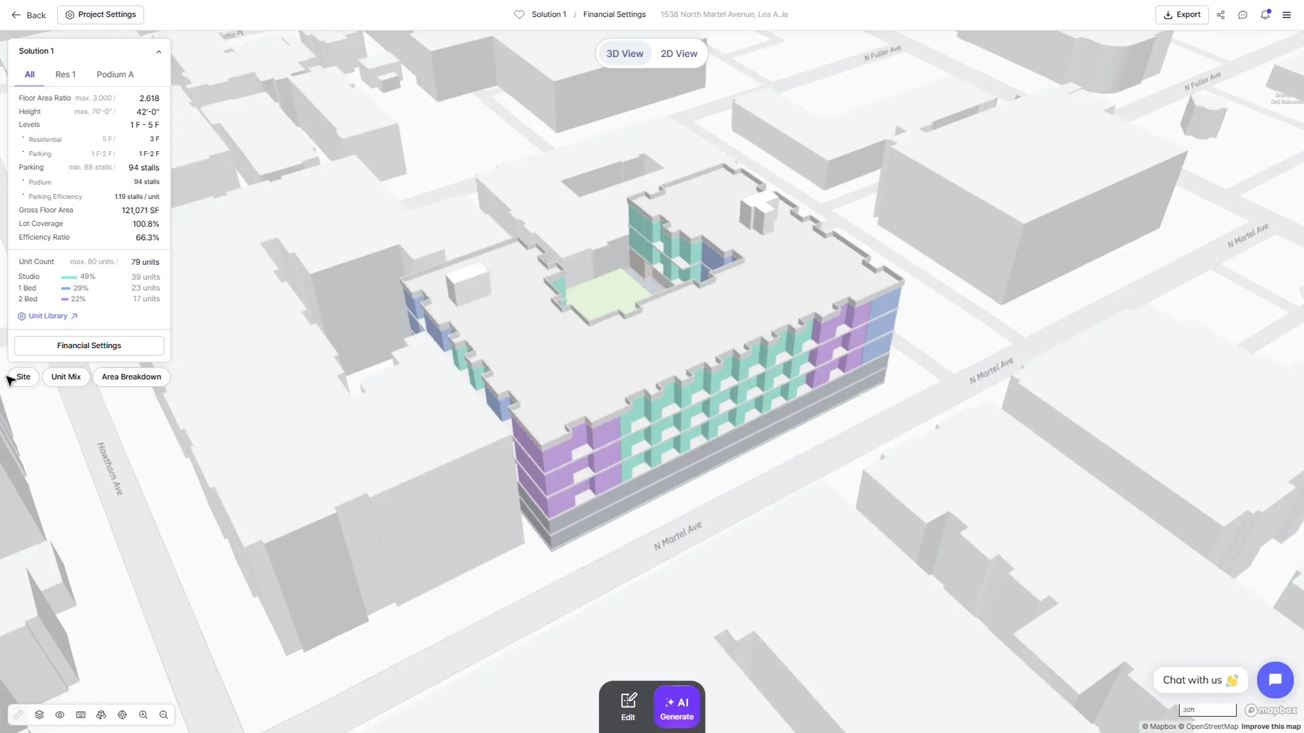 Zenerate通过AI自动生成优化的场地规划、楼层平面和停车布局,将传统耗时数周的可行性研究缩短至数分钟。平台可根据容积率、户数、楼层数等目标自动生成多种设计方案,并实时计算NOI、成本和收益率等财务指标。核心解决了房地产开发前期方案反复修改、效率低下的问题,帮助开发商、建筑师和经纪人快速做出数据驱动的投资决策。